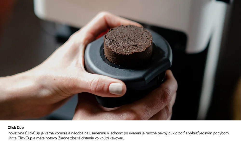 odnímateľnej varnej komore v tvare ClickCup sa vo vnútri kávovaru nemôžu hromadiť žiadne nečistoty.